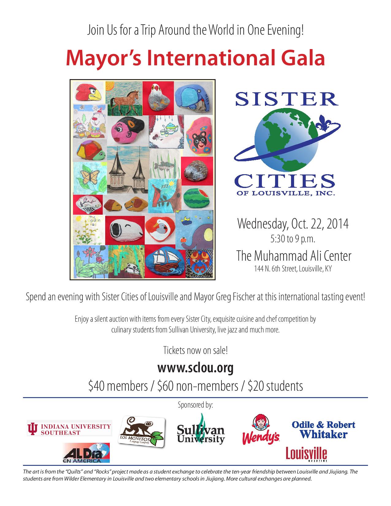 Событие пройдет в среду 22 октября 2014 года с 17:30 до 21:00 в центре Мухаммеда Али, вы можете забронировать билеты для себя или для городов-побратимов Луисвилля на сайте: www.sclou.org .